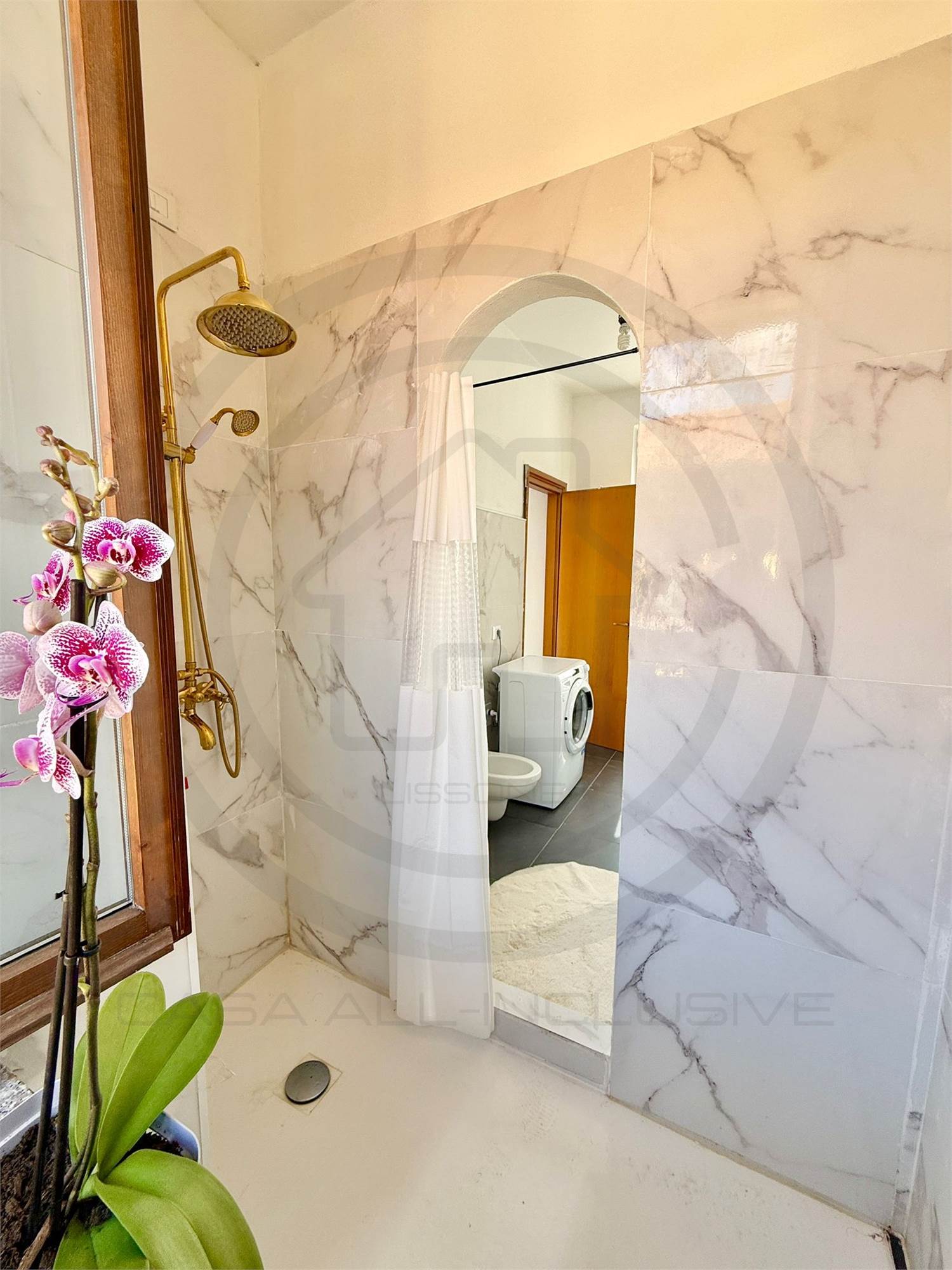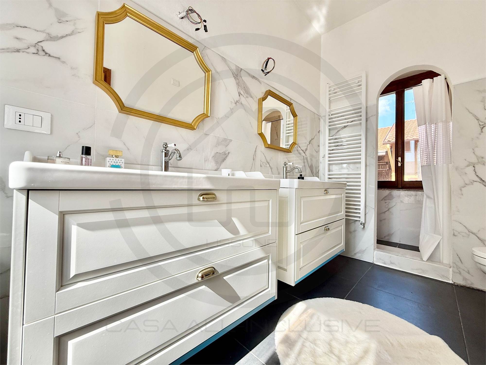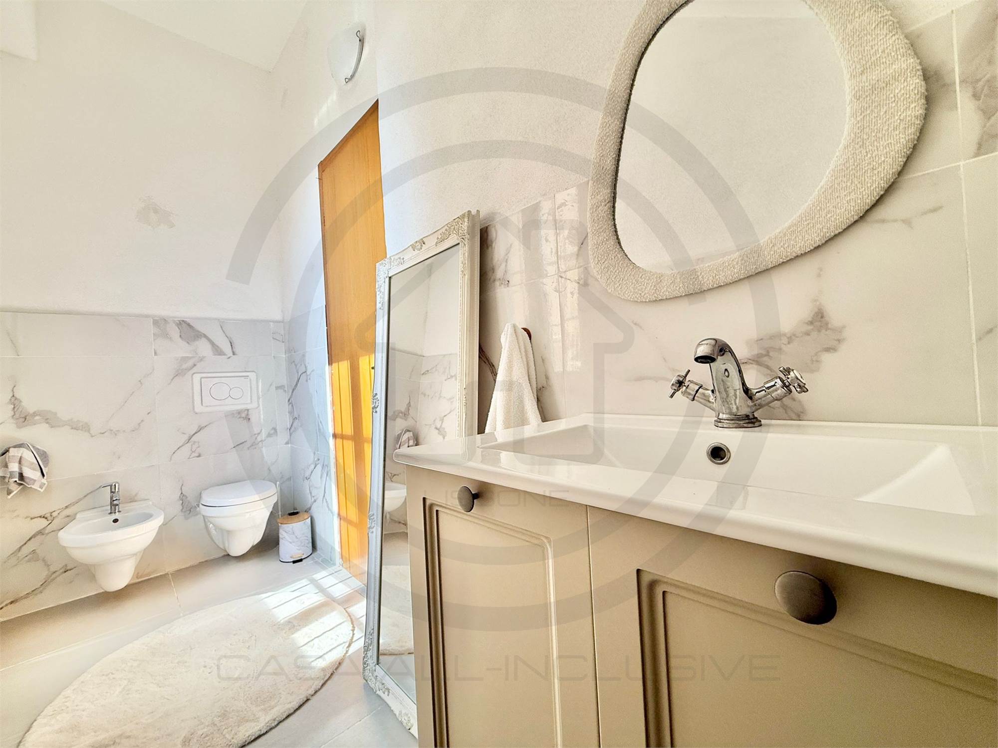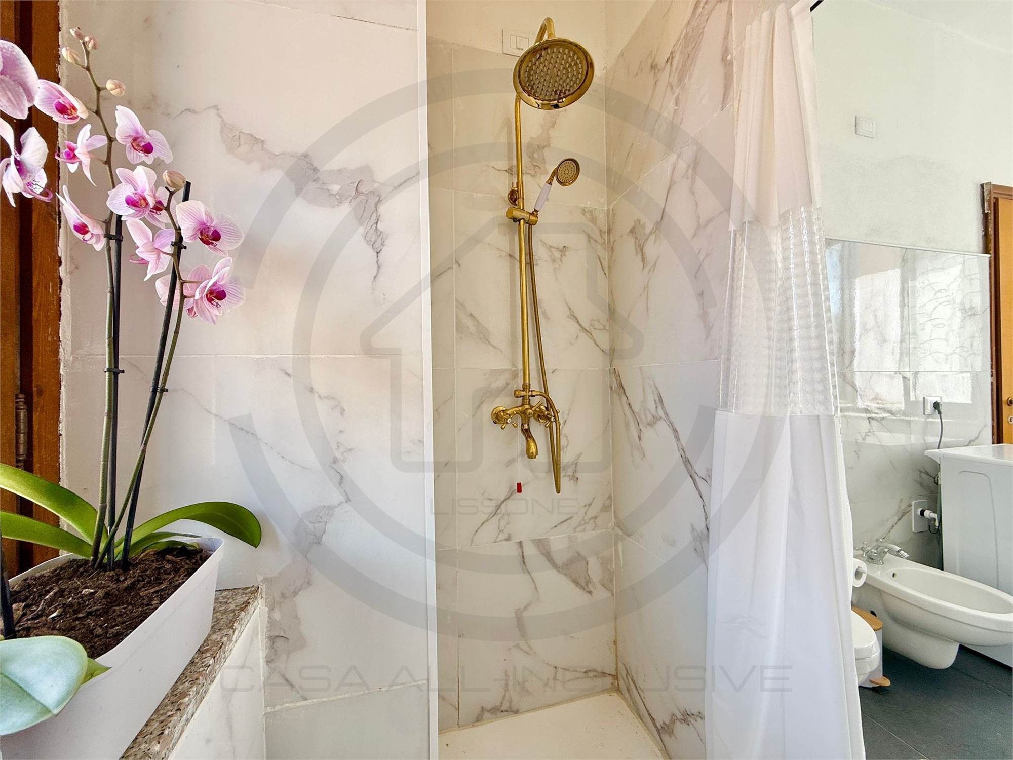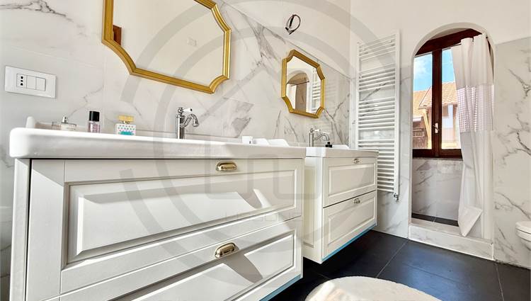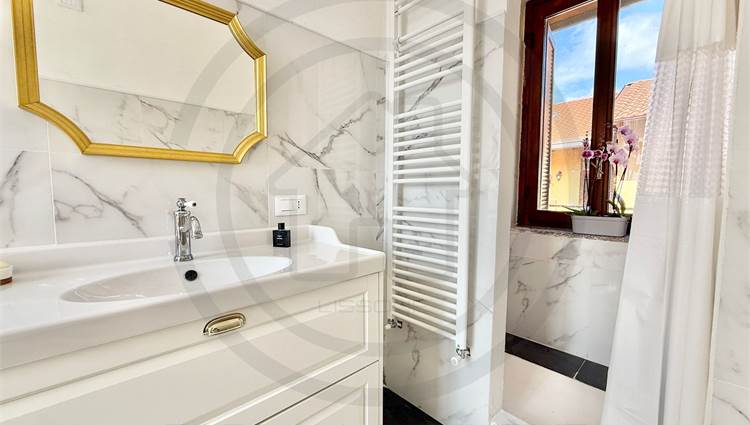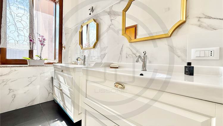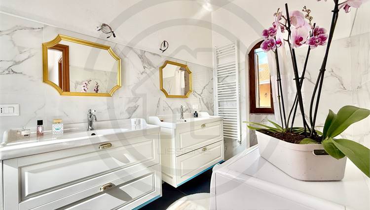 PIANO PRIMO: una comoda ed ampia scala in marmo conduce al piano primo dove troviamo un comodo disimpegno finestrato, ampia camera padronale con uscita su terrazzino di proprietà dove grazie la sua generosa metratura vi è la possibilità di creare una cabina armadio, la stessa camera grazie al doppio affaccio gode di un ampia luminosità, infine troviamo uno splendido ed ampio ed ESCLUSIVO bagno DOPPIO dotato di doppi lavabi, doppio affaccio risultando estremamente luminoso e doccia suitè in muratura finestrata il tutto caratterizzato da materiali di pregio che lo rendo un bagno comodo, luminoso ed esclusivo.