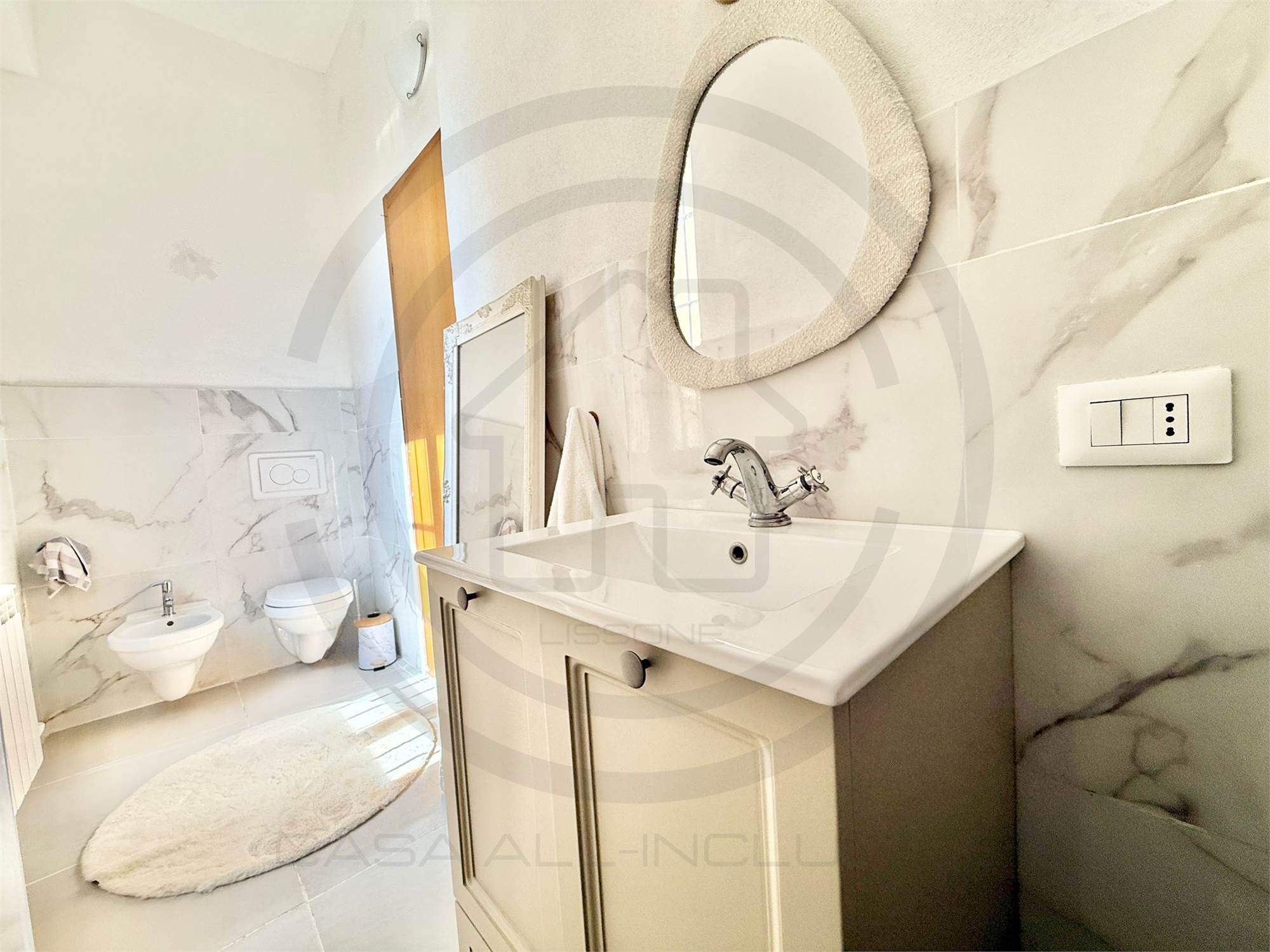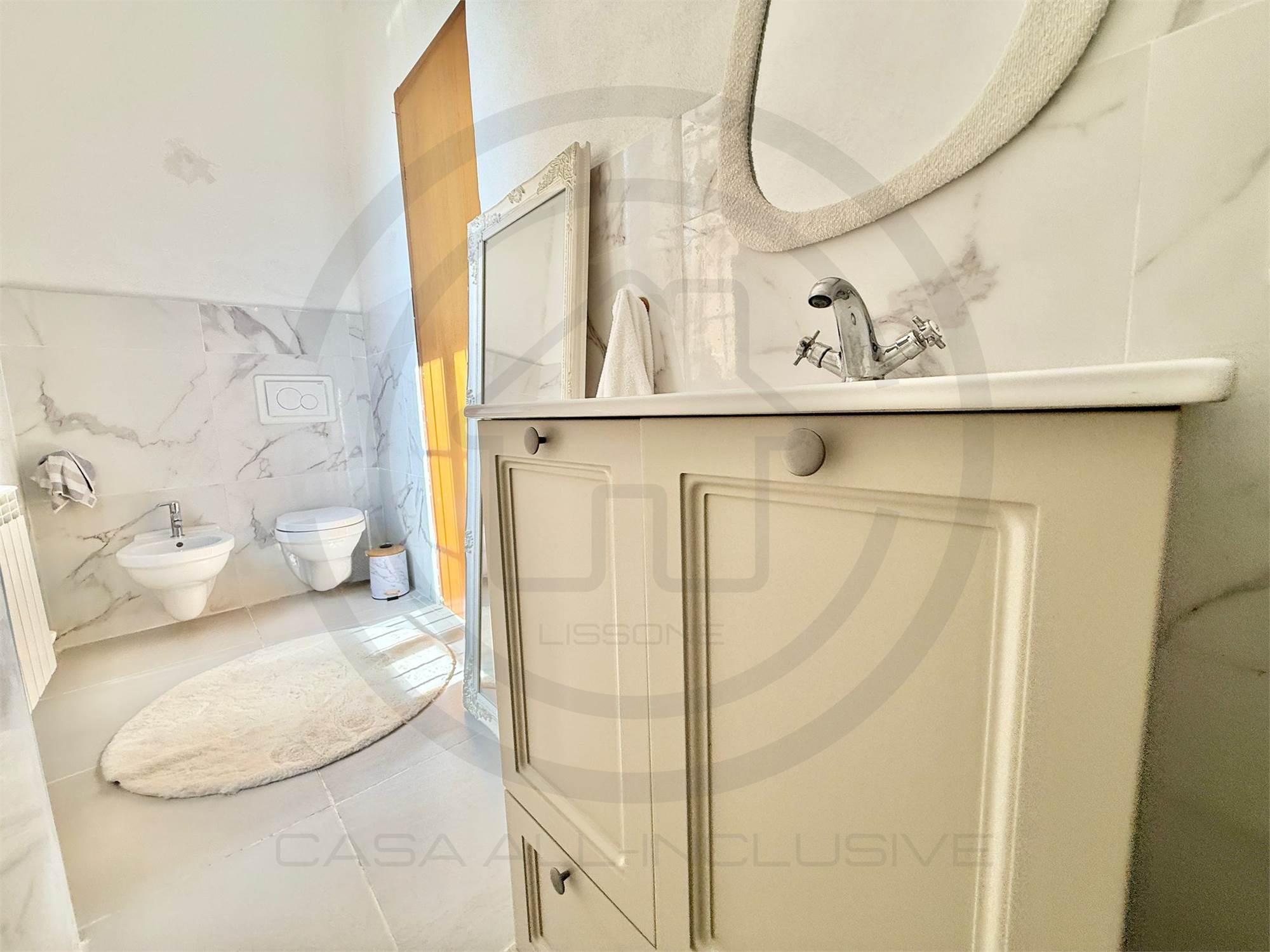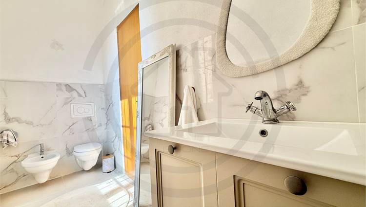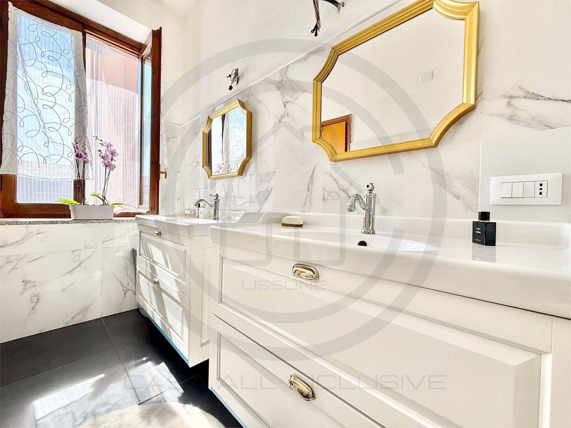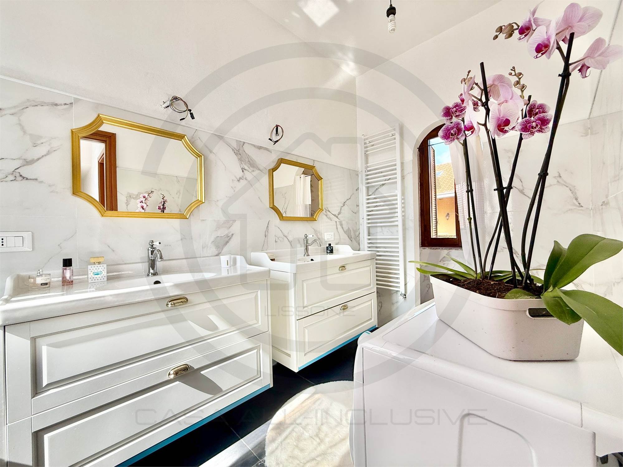 PIANO PRIMO: una comoda ed ampia scala in marmo conduce al piano primo dove troviamo un comodo disimpegno finestrato, ampia camera padronale con uscita su terrazzino di proprietà dove grazie la sua generosa metratura vi è la possibilità di creare una cabina armadio, la stessa camera grazie al doppio affaccio gode di un ampia luminosità, infine troviamo uno splendido ed ampio ed ESCLUSIVO bagno DOPPIO dotato di doppi lavabi, doppio affaccio risultando estremamente luminoso e doccia suitè in muratura finestrata il tutto caratterizzato da materiali di pregio che lo rendo un bagno comodo, luminoso ed esclusivo.