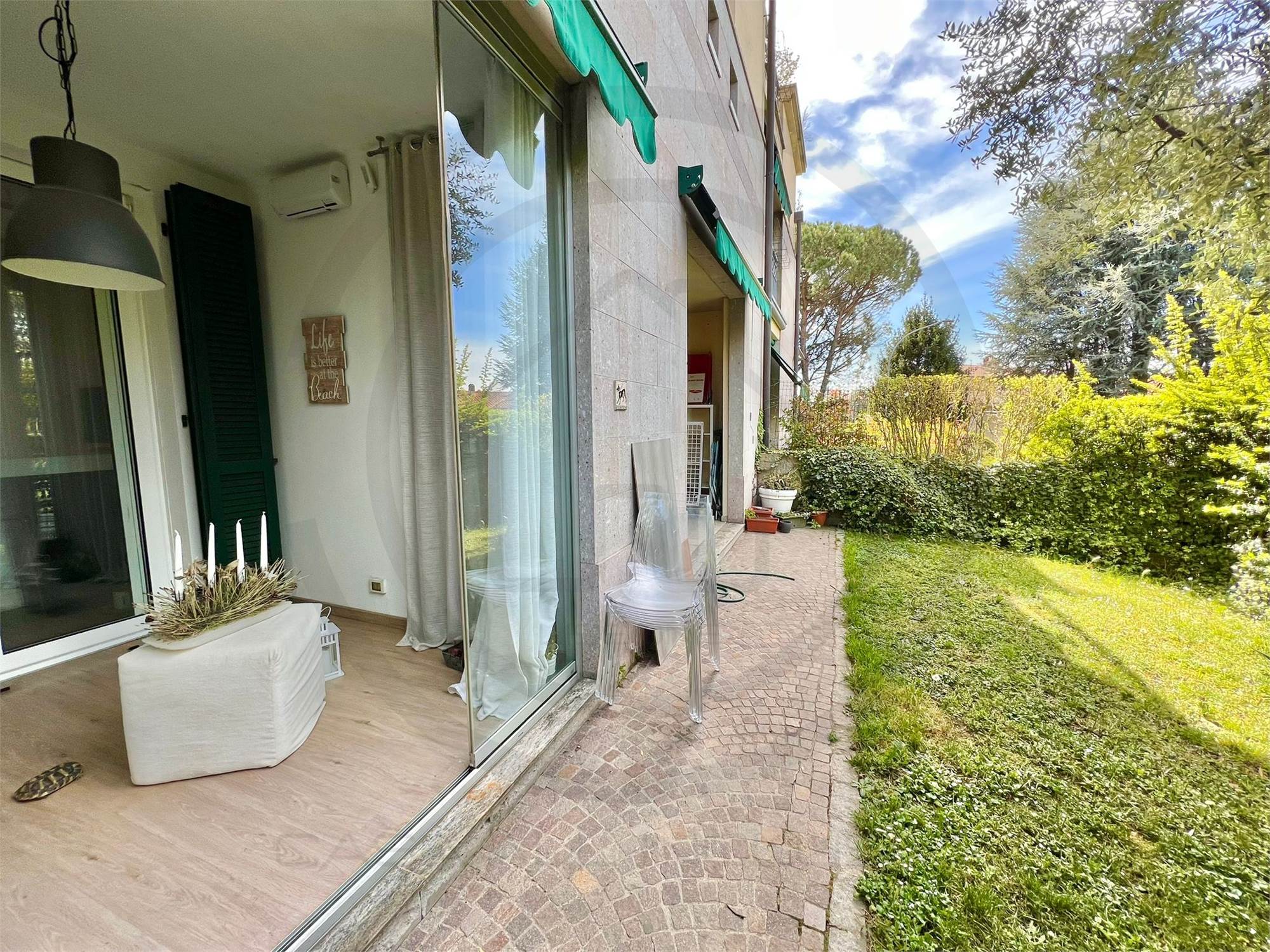 La parte dei giardini si estende per circa 135 mq, più la bellissima e confortevole zona del patio, ideale per trascorrere momenti di piacevole relax oppure per cene con amici e parenti.