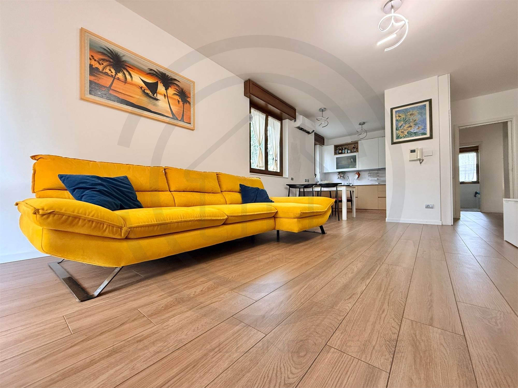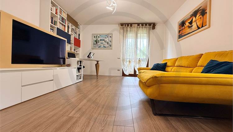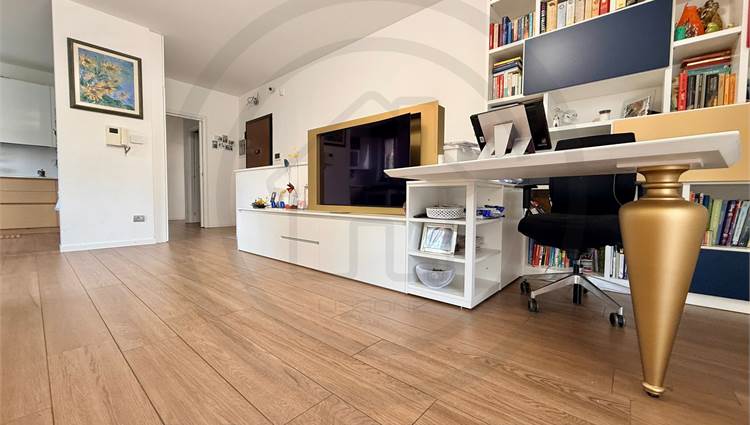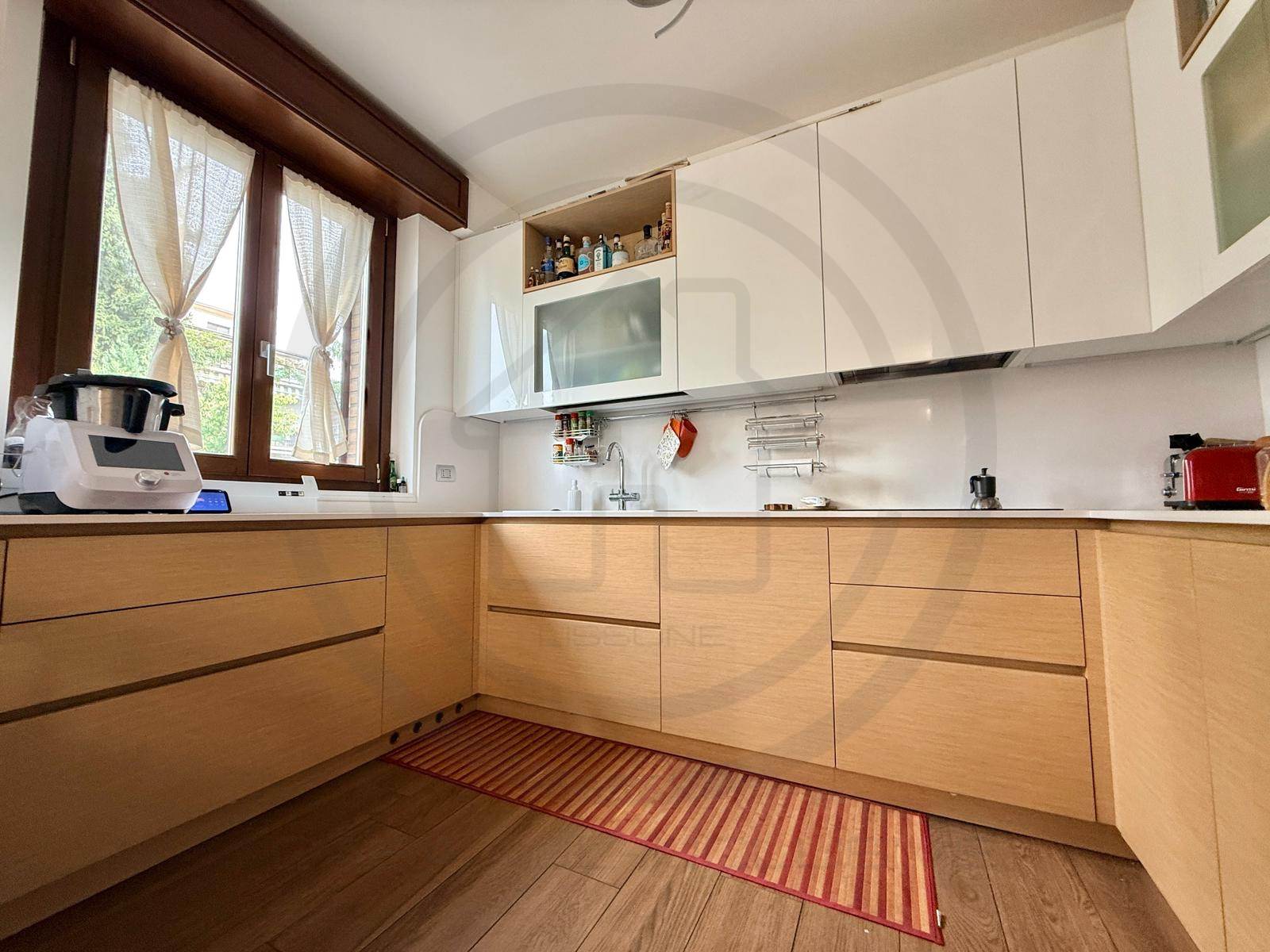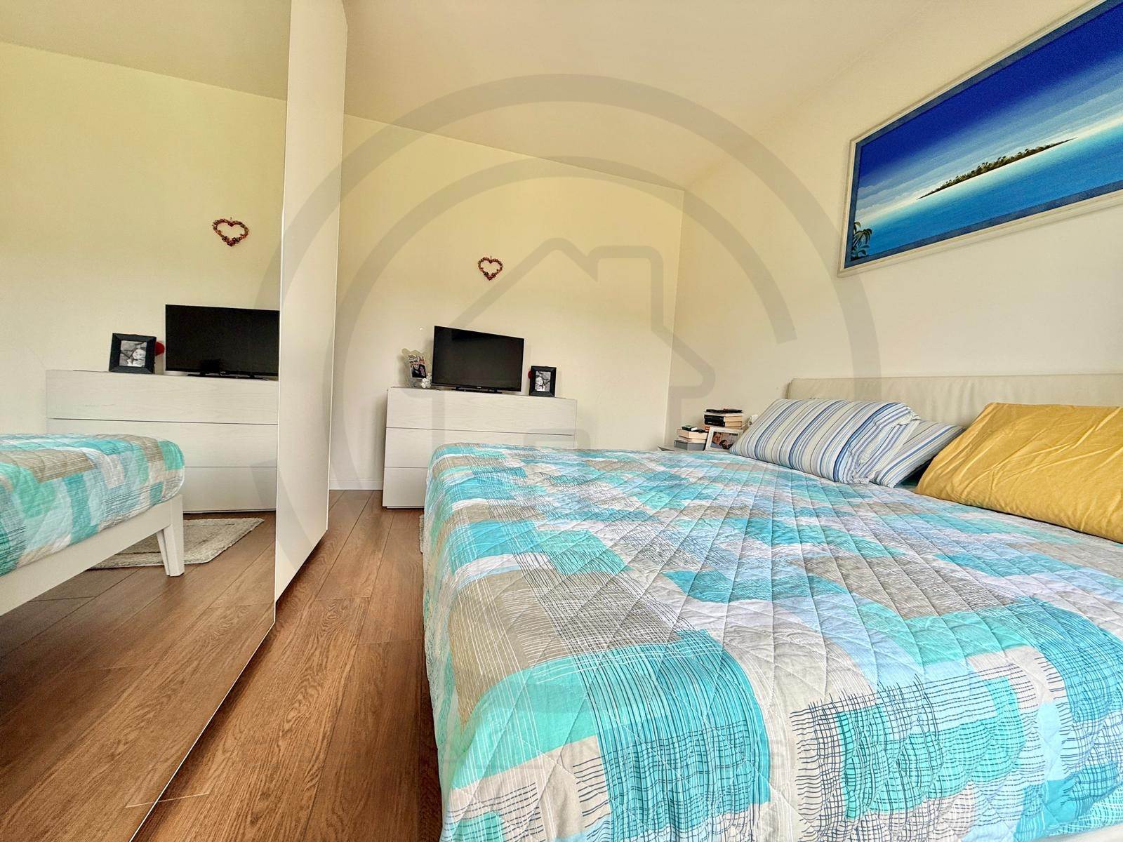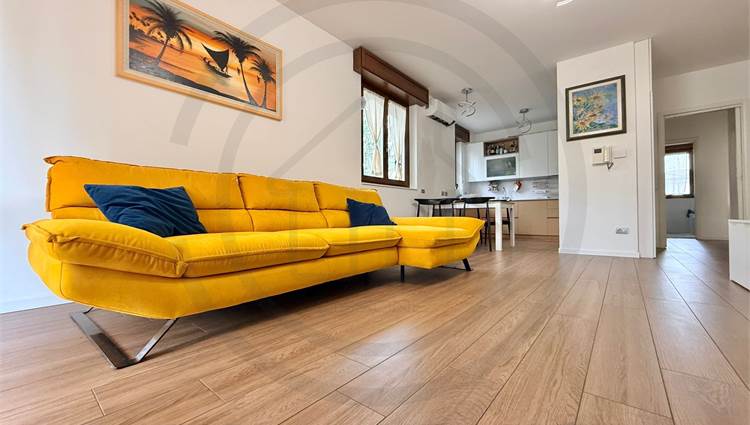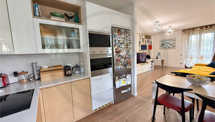 La soluzione, posta al piano terra, e' composta da ingresso con armadiature su misura, AMPIA E LUMINOSA ZONA LIVING bi- esposta, con uscita sul giardino, cucina a VISTA sulla zona giorno ma che si può' tranquillamente rendere separata dal soggiorno. Dal disimpegno centrale si accede alla ZONA NOTTE composta da bagno padronale FINESTRATO rifinito con vasca, bagno SECONDARIO rifinito con piatto doccia e 2 GRANDI CAMERE DA LETTO, la padronale e' dotata anche di balcone privato che da l'affaccio sul giardino.