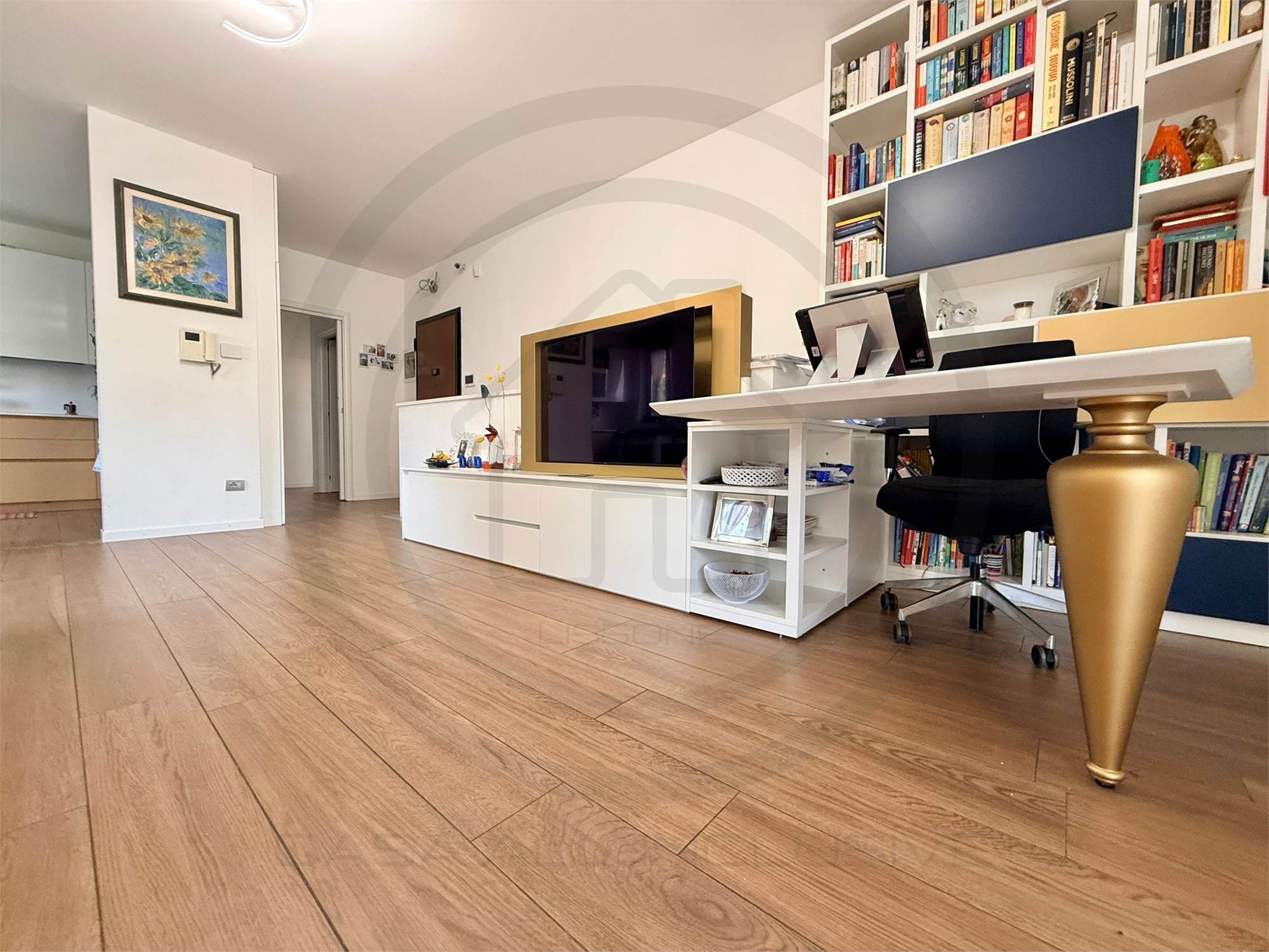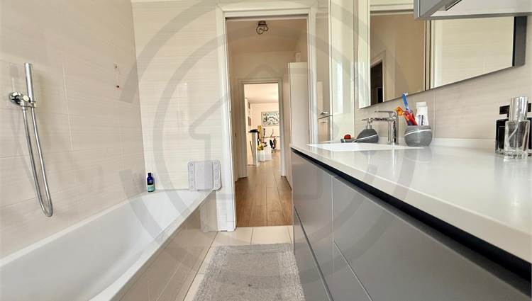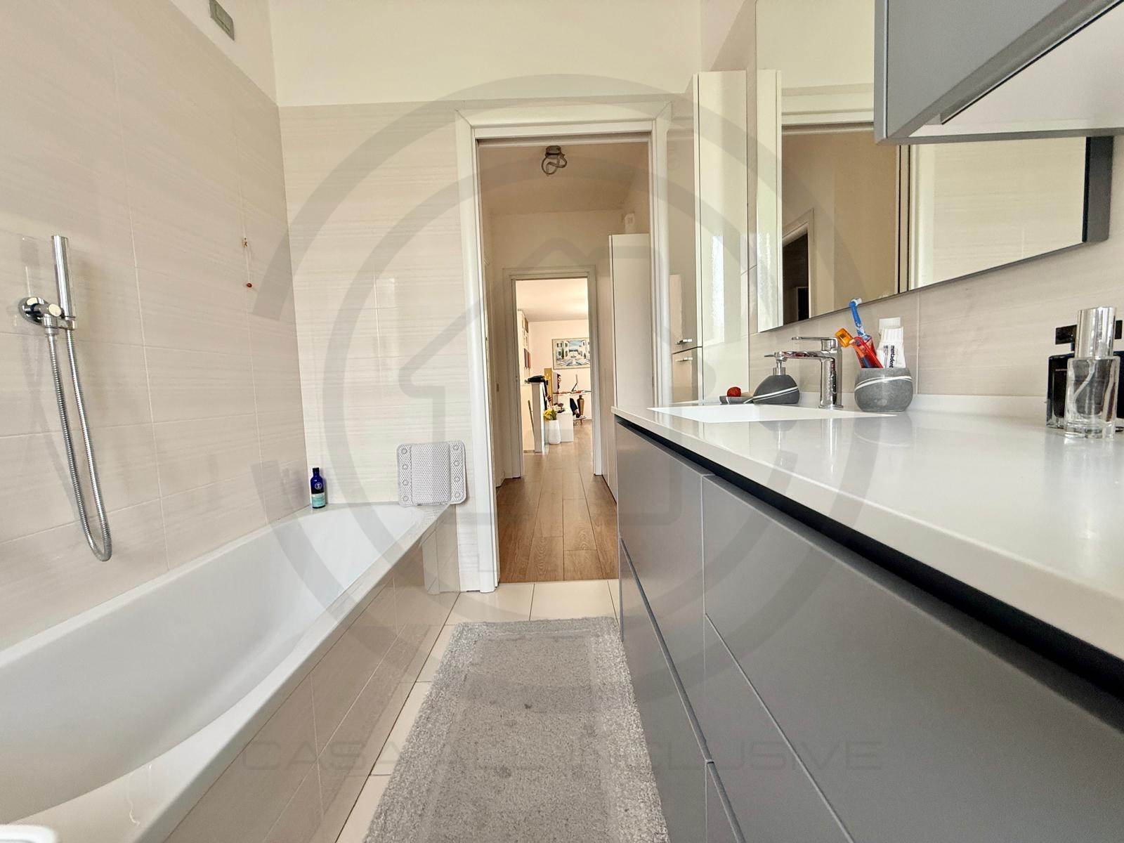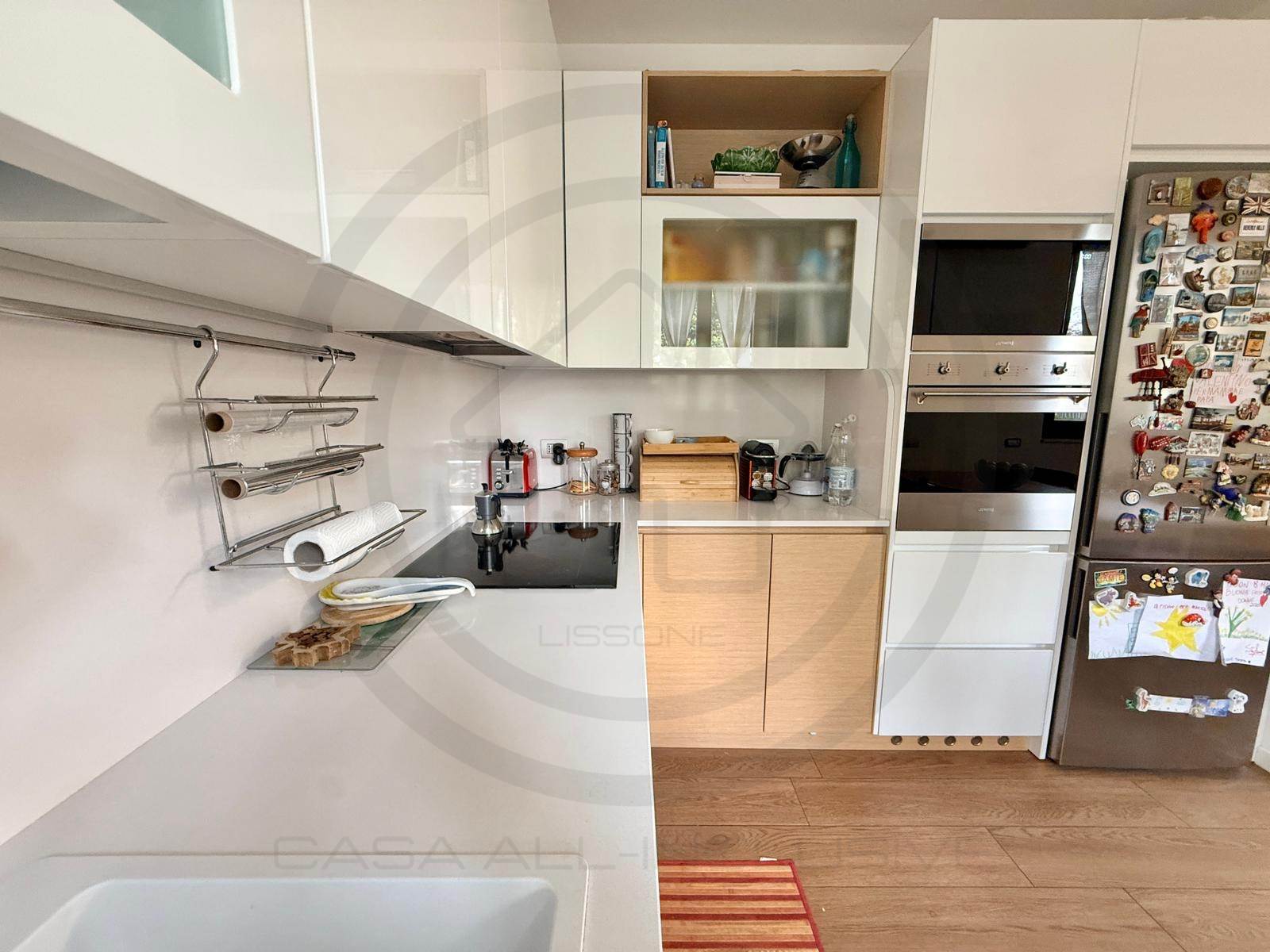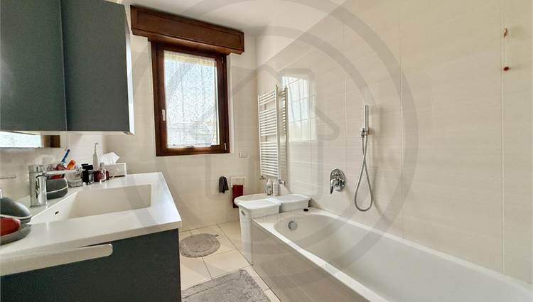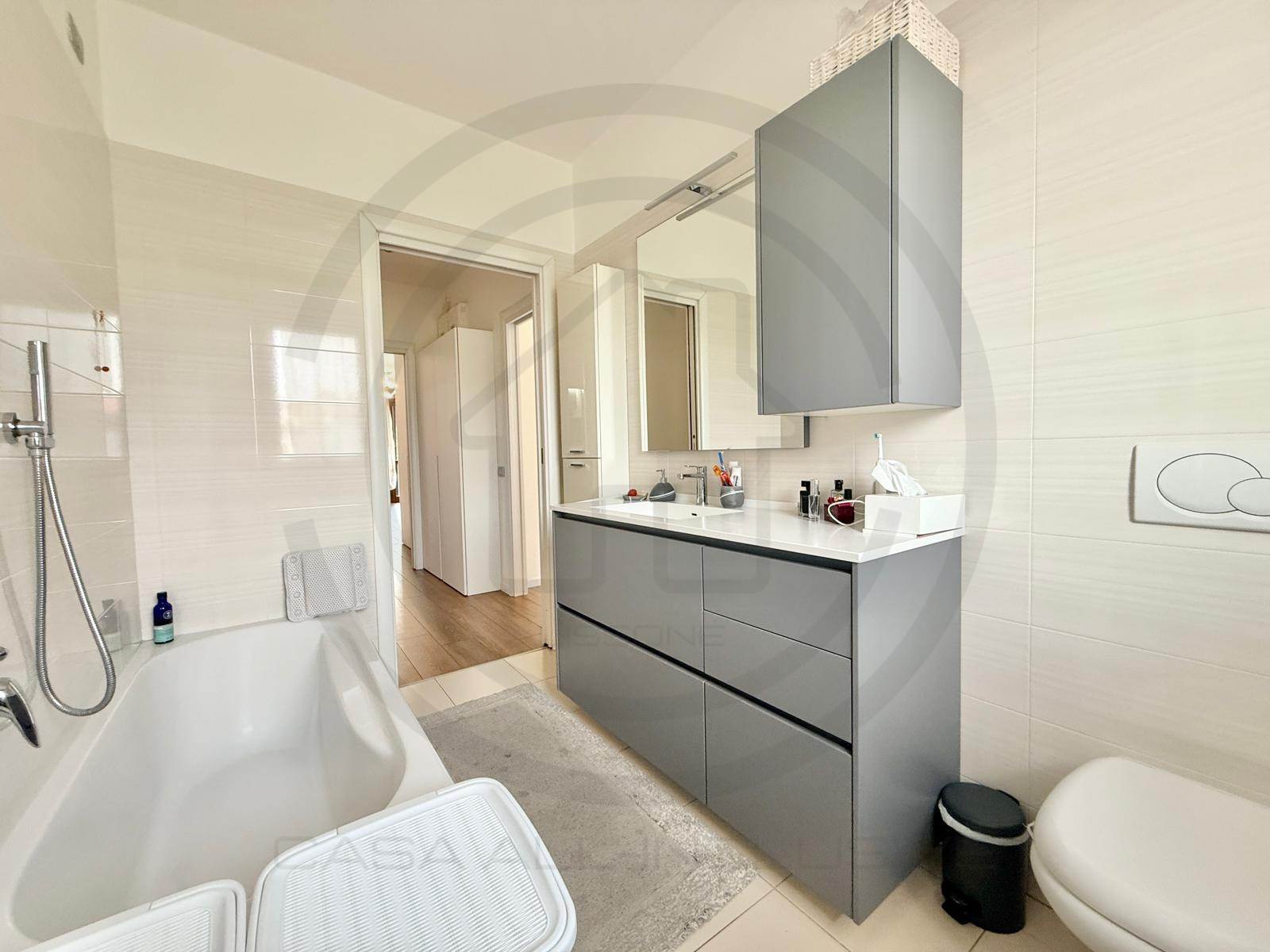 La soluzione, posta al piano terra, e' composta da ingresso con armadiature su misura, AMPIA E LUMINOSA ZONA LIVING bi- esposta, con uscita sul giardino, cucina a VISTA sulla zona giorno ma che si può' tranquillamente rendere separata dal soggiorno. Dal disimpegno centrale si accede alla ZONA NOTTE composta da bagno padronale FINESTRATO rifinito con vasca, bagno SECONDARIO rifinito con piatto doccia e 2 GRANDI CAMERE DA LETTO, la padronale e' dotata anche di balcone privato che da l'affaccio sul giardino.