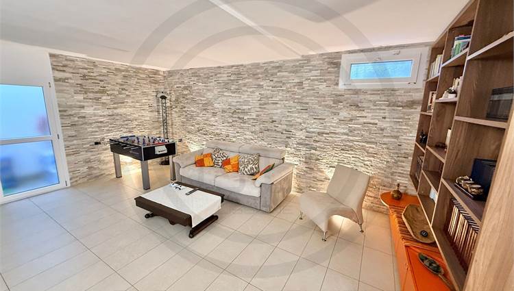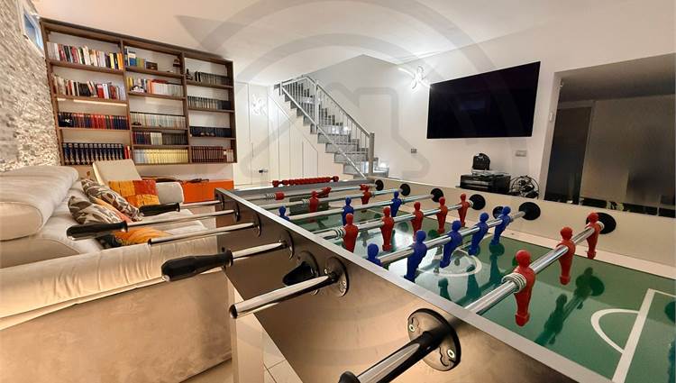 Dal soggiorno tramite una BELLISSIMA SCALA DI DESIGN si accede al locale TAVERNA, ad oggi sfruttato come prolungamento zona giorno, ideale anche come ZONA HOBBY O SALA GIOCHI, con la possibilita' eventualmente di creare una seconda cucina, all'interno dell'ambiente. Infine troviamo uno spazioso LOCALE LAVANDERIA, molto comodo e dotato di tutti i comfort.