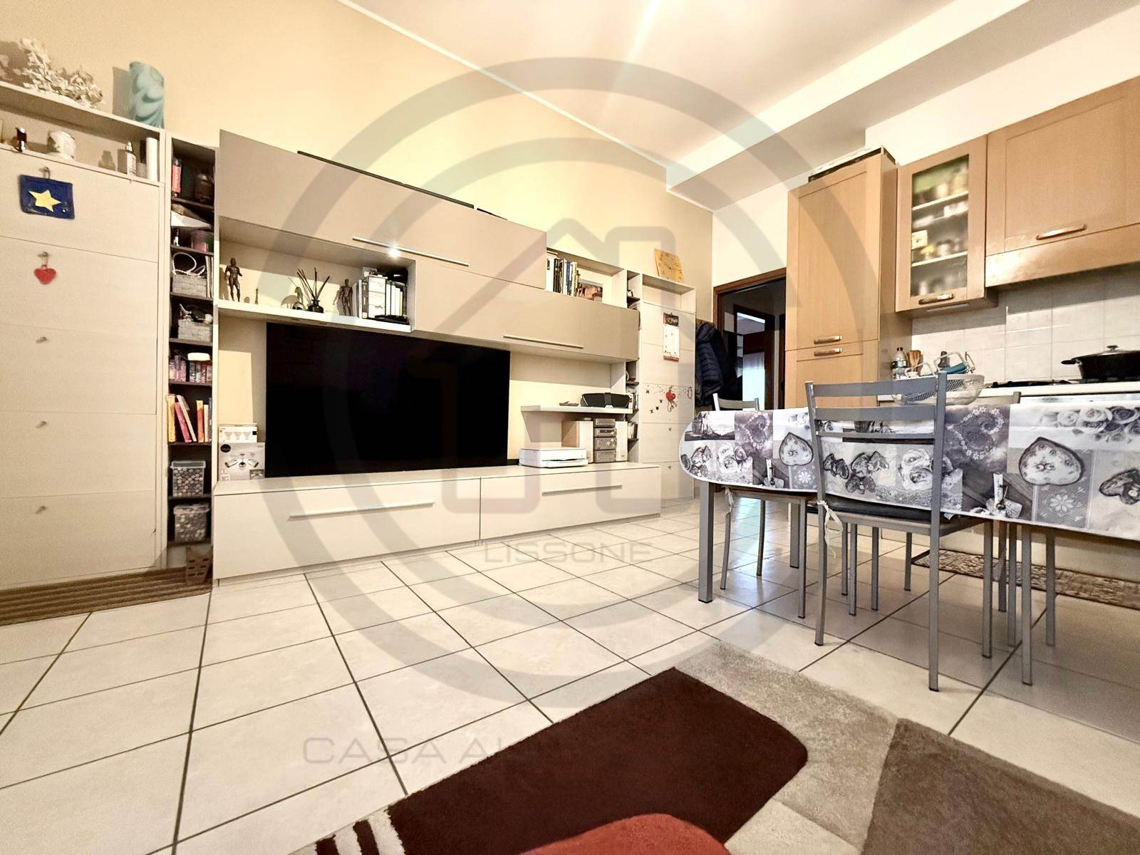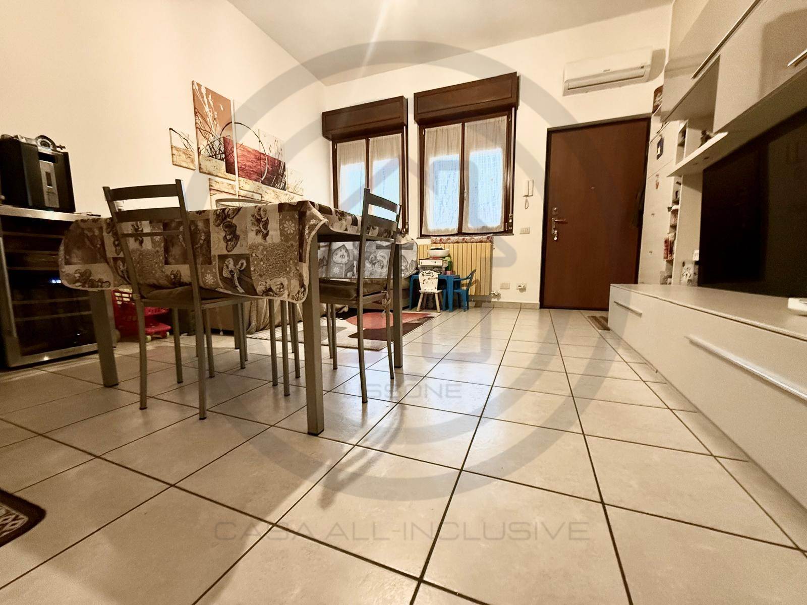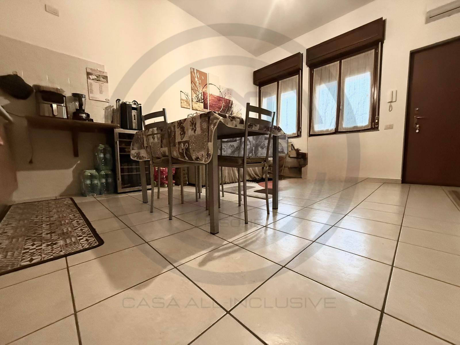 Appartamento al piano primo con ascensore composto da: soggiorno con cucina a vista OPEN SPACE, disimpegno con armadiatura su misura co LAVATRICE AD INCASSO, ampia camera matrimoniale ed infine bagno finestrato.