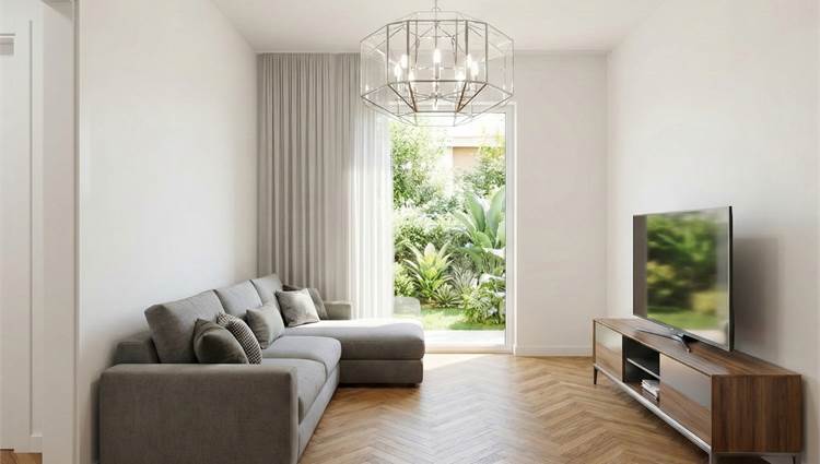 Internamente l'appartamento e' composto da ZONA LIVING con cucina a vista con affaccio su giardino privato, disimpegno, BAGNO PADRONALE FINESTRATO, camera singola ed infine CAMERA MATRIMONIALE con secondo BAGNO PRIVATO ( con areazione forzata) .