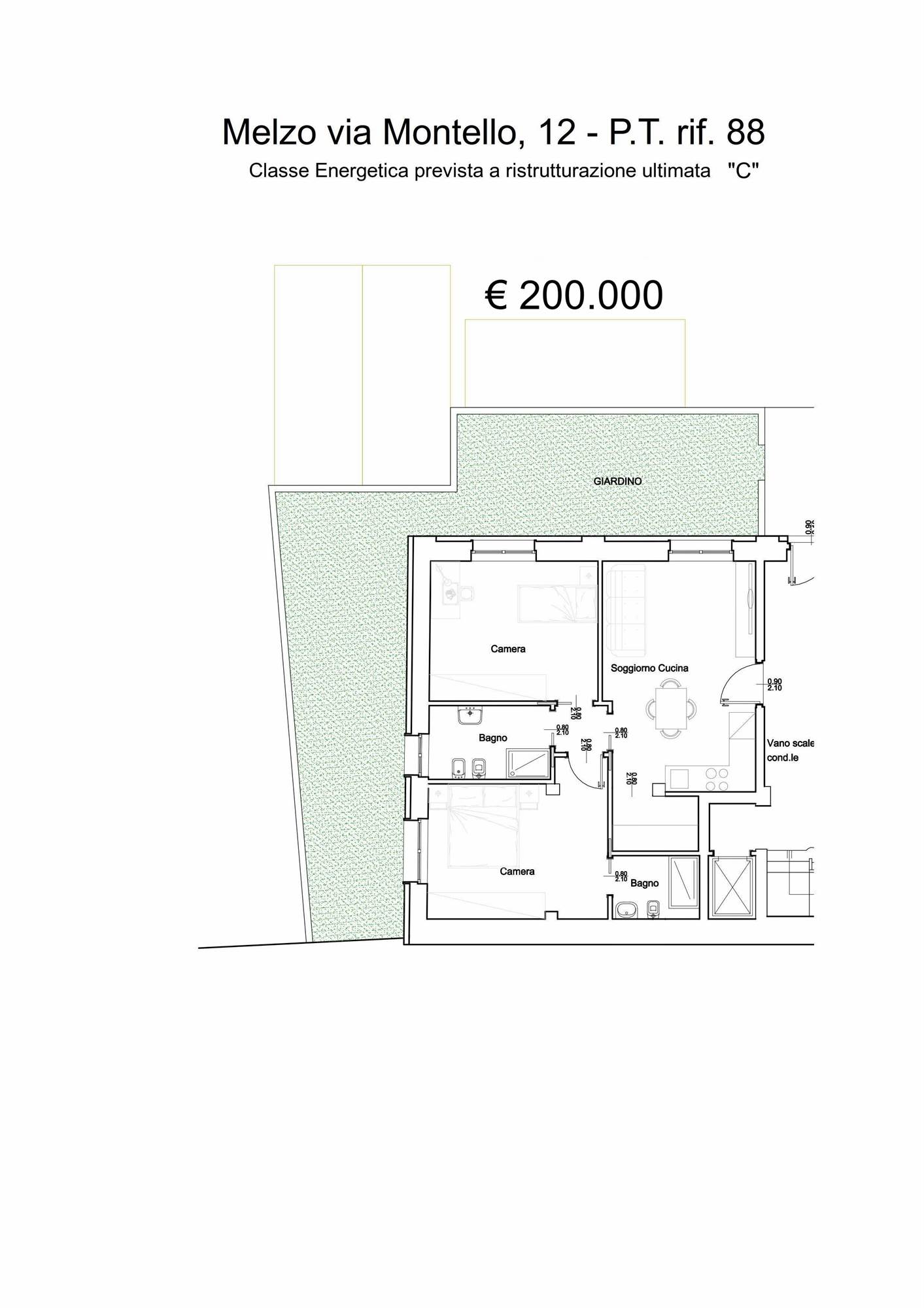 APPARTMENTO POSTO AL PIANO TERRA CON GIARDINO PRIVATO DI 60 MQ CIRCA, il quale si sviluppa su 2 lati della costruzione.