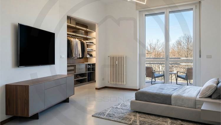 La soluzione può essere trasformata in un comodo Trilocale, oppure in un ampio Bilocale con cabina armadio e bagno privato in camera.