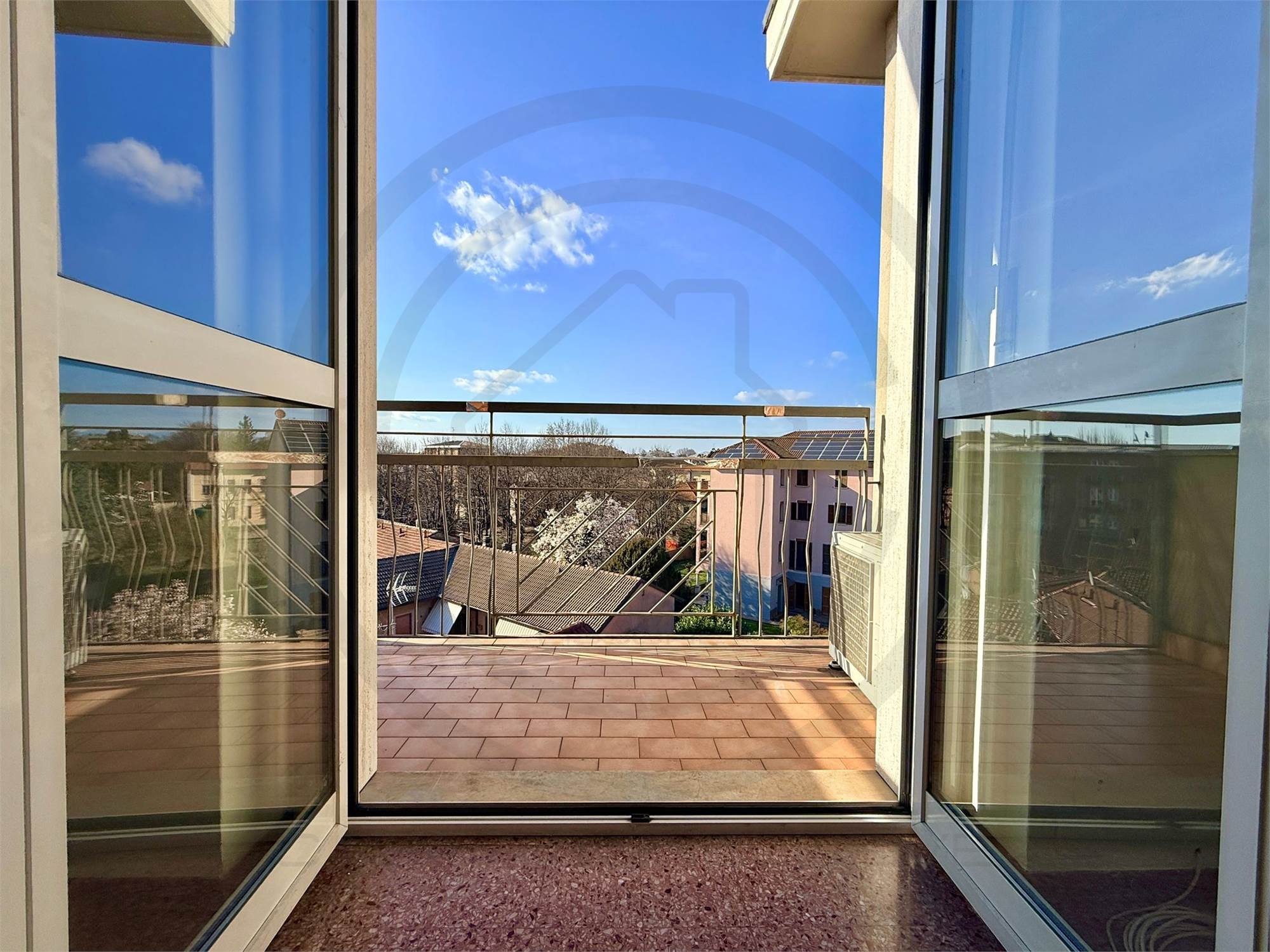 Appartamento, sito al quinto ed ultimo piano con vista panoramica, servito da ascensore in un contesto di palazzina anni 70, riqualificata, tra cui facciata appena rifatta e vano ascensore nuovo in vetro.